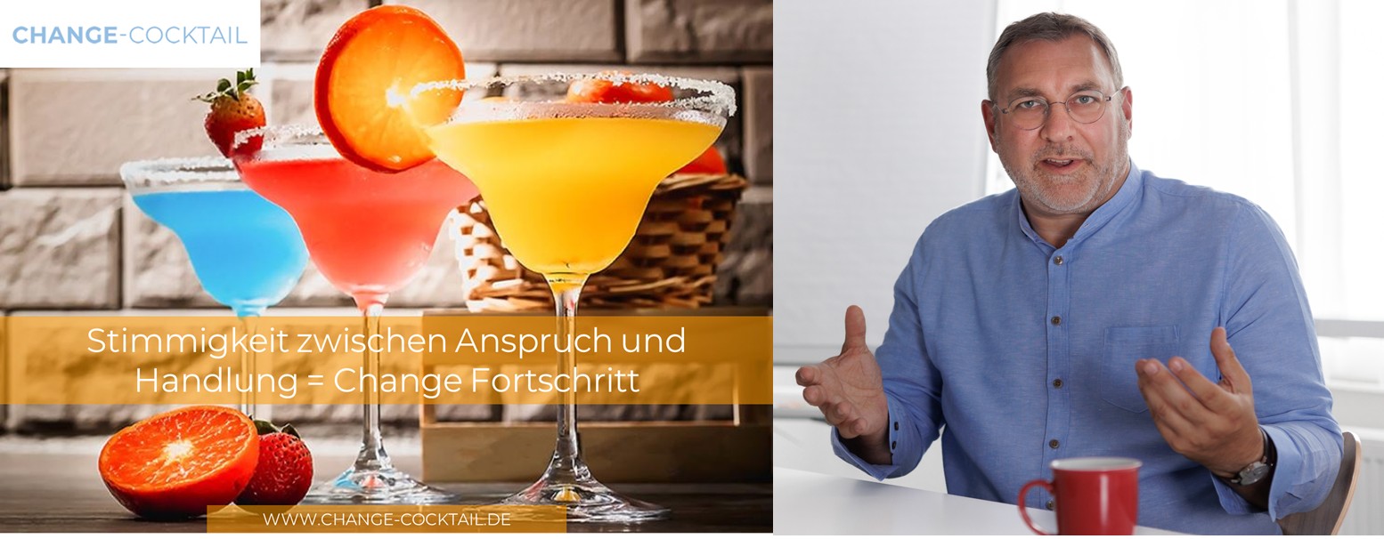Was zeigt sich daran? Ein glaubwürdiger Wandel kann nur geschehen, wenn die beiden Ebenen von Anspruch und Handlung miteinander stimmig sind. Wenn ich mich nicht in meinem Tun verändere, entsteht kein wirklicher Lernprozess. Dieser ist aber für eine Veränderung zwingend notwendig. Erst dadurch findet eine wirkliche Transformation statt und eben nicht nur eine postulierte. Zugleich ist es ein zentraler Hebel zur stimmigen Entwicklung der Kultur, denn auch diese darf dem Veränderungsvorhaben nicht entgegenstehen. Ansonsten ist der Effekt eher, wie oben beschrieben, es wird nur die „neue Sprache“ gelernt“ und das war es dann.